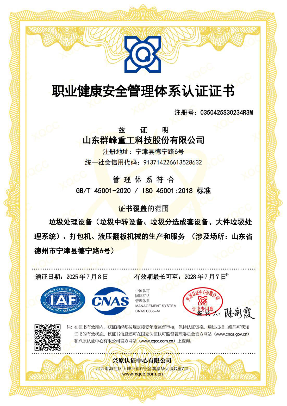质量管理体系认证书